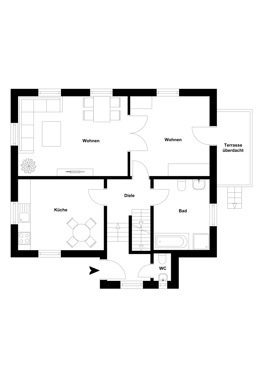 - Wohnen/Essen durch 2-flügelige Tür trennbar
